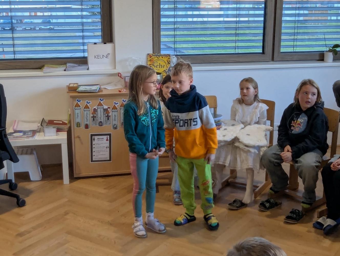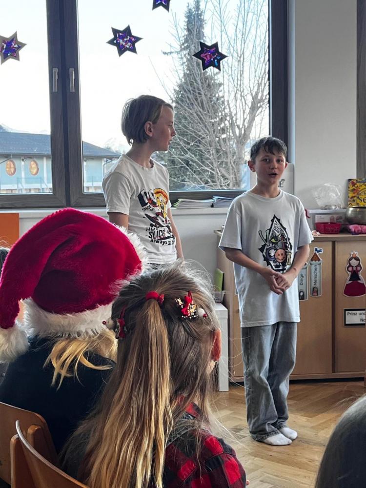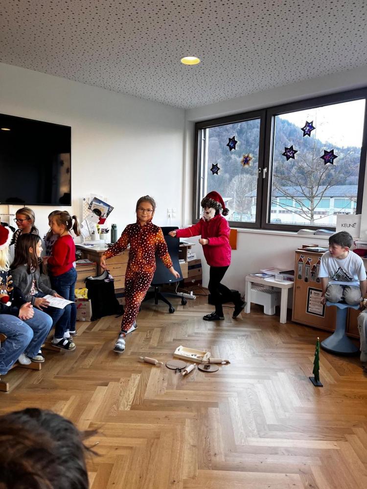 Am letzten Schultag vor den Schitagen und den Weihnachtsferien durften die Kinder ihre Talente unter Beweis stellen. Jedes Kind führte eine kleine "Showeinlage" vor. Es wurde gesungen, musiziert, experimentiert und gezaubert. Sogar kleine Gedichte und ein selbstgeschriebenes Theaterstück wurden aufgeführt.